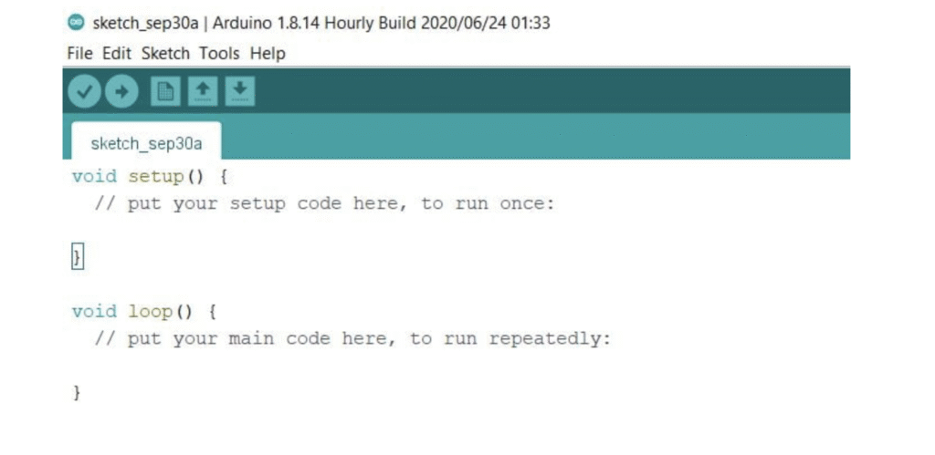 برنامه Arduino IDE، یک کامپایلر است.بر مبنای زبان برنامهنویسی C، کدنویسی آردوینو را انجام میدهد. اگر به زبان C مسلط نیستید نگران نباشید، در حدی که نیاز داشته باشیم در توضیحات، دستورات آن را آموزش خواهیم داد.