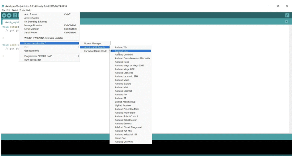 مطابق شکل زیر برد موردنظر را انتخاب میکنیم.